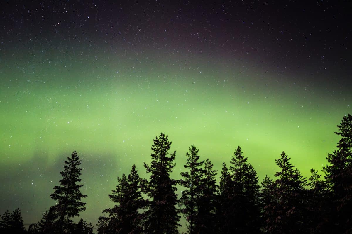 They started from the same corner of the sky as before. The green hues bounced across the sky stretching into an arc over the evergreen forest. The lights playfully faded and brightened seemingly unaware of an audience watching their every move before finally going dark for good.