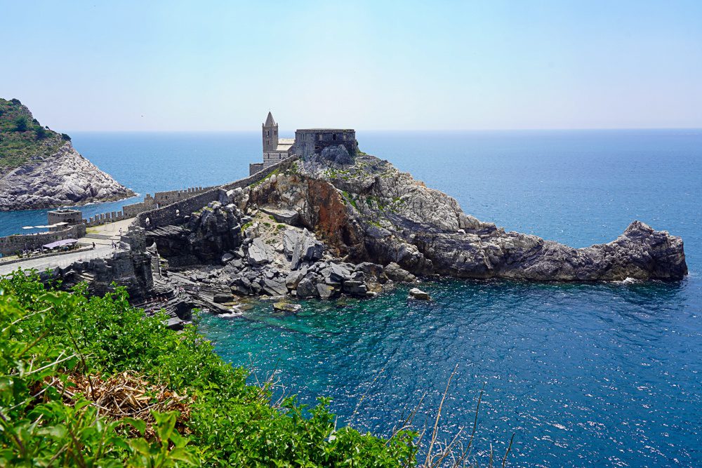 San Pietro Church sits on one of the most dazzling spots in all of Liguria and reminded me of some of the landscapes in Puglia. The rocky outcrop on which the church was built overlooks the sweeping Italian coastline and the azure waters of the Mediterranean. Byron’s Grotto is just before the church on the right.